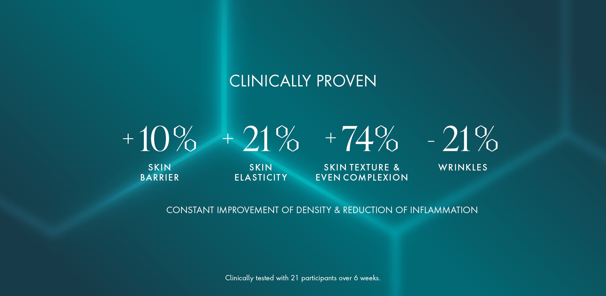 Serum with 100% skin-identical, micro-molecular collagen to reduce lines and wrinkles by up to 21% after just 6 weeks. -