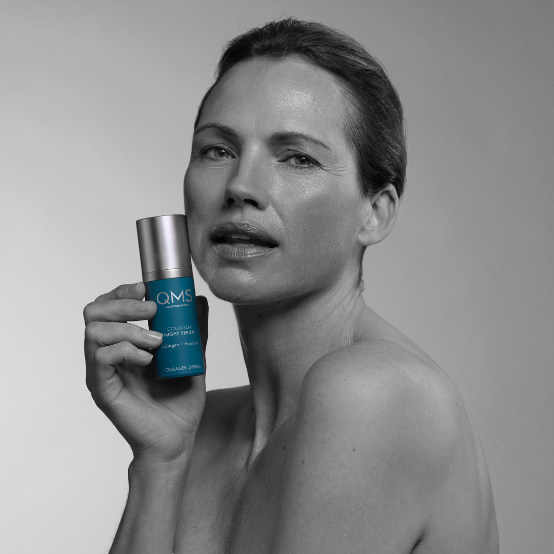"Die Collagen Day und Night Seren spenden Feuchtigkeit und können auch für die gesamte Augenregion verwendet werden. Das Serum ist Teil des QMS Core Systems und sollte für einen maximalen Effekt nach einem Exfoliant aufgetragen werden." - Solveig, QMS Trainerin