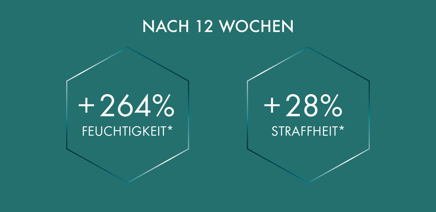 ERGEBNIS: +264% bessere Feuchtigkeit und ein sichtbarer Unterschied mit +28% mehr Straffheit der Haut.